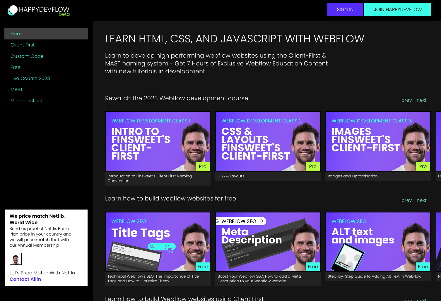 Una plataforma de educación Webflow que muestra las posibilidades de desarrollo Webflow. Actualmente en Beta, este proyecto se fusionará con el podcast The Visual Div en el próximo mes.