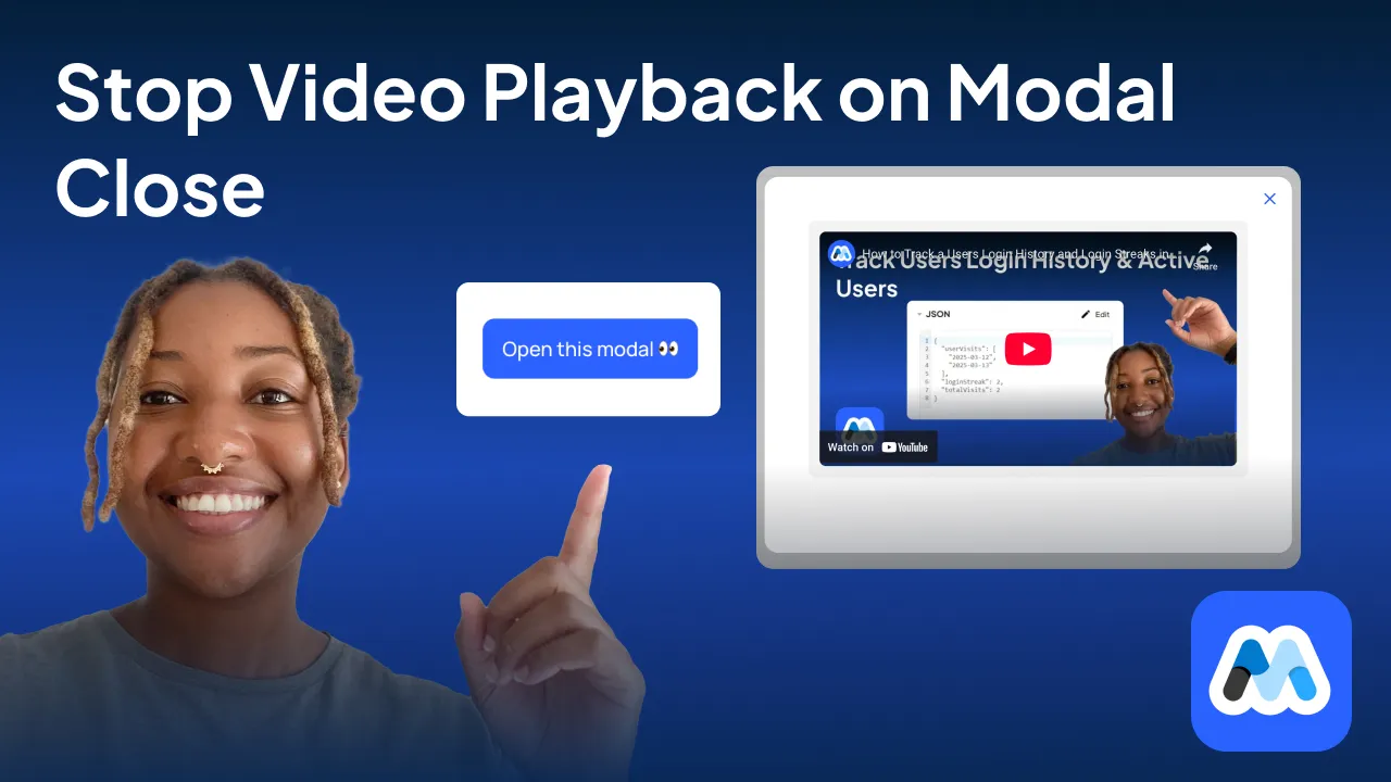 Automatically stop video playback when closing modals in Webflow.